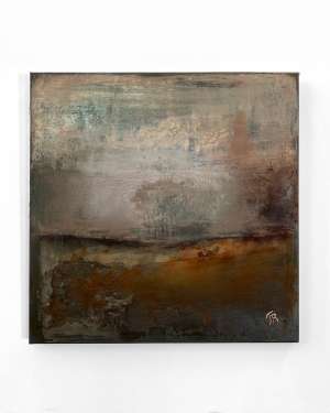 «Out of the boks» er et landskapslignende maleri med en miks av mange ulike teknikker hvor kunstneren har gått ut av boksen og oppfordrer også andre til å slippe seg selv mer fri.